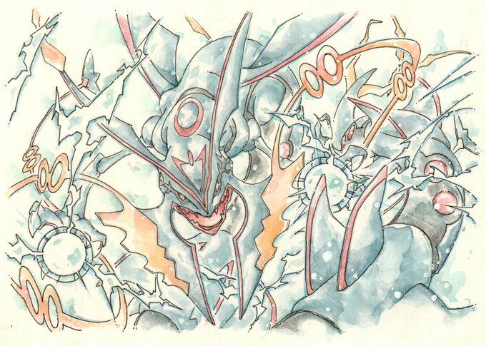 スカイカラット Twitter वर 色鉛筆で色違いのメガレックウザ描きました